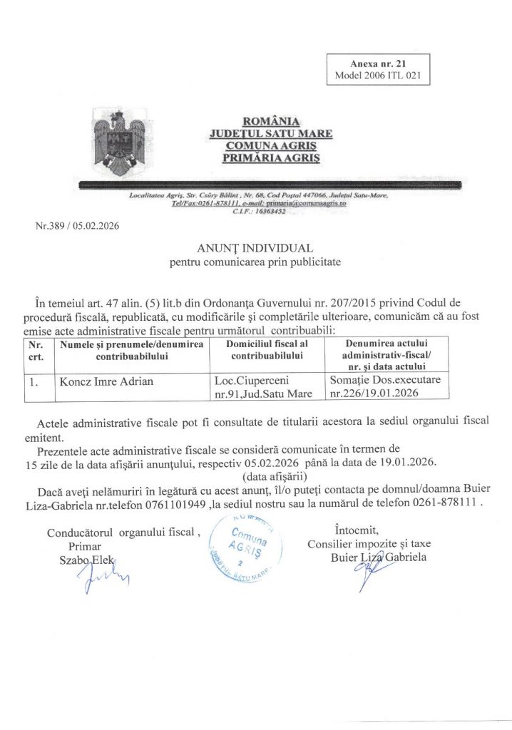10 feb. Anunt individual Koncz Imre Posted at 13:42h in Anunturi, Anunturi 2026 by lacikasimon 0 Comments 0 Likes Descarcare PDF: Anunt individual Koncz Imre