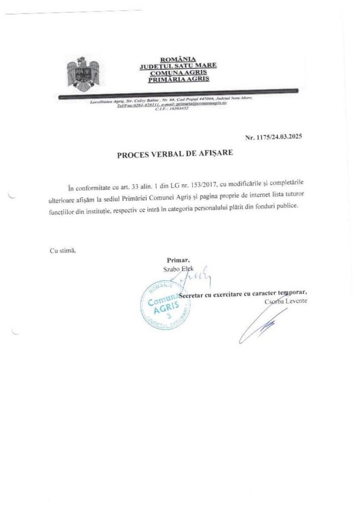 24 mart. Proces verbal de afișare Posted at 08:36h in Anunturi, Anunturi 2025 by lacikasimon 0 Comments 0 Likes Descarca pdf: Proces verbal de afișare
